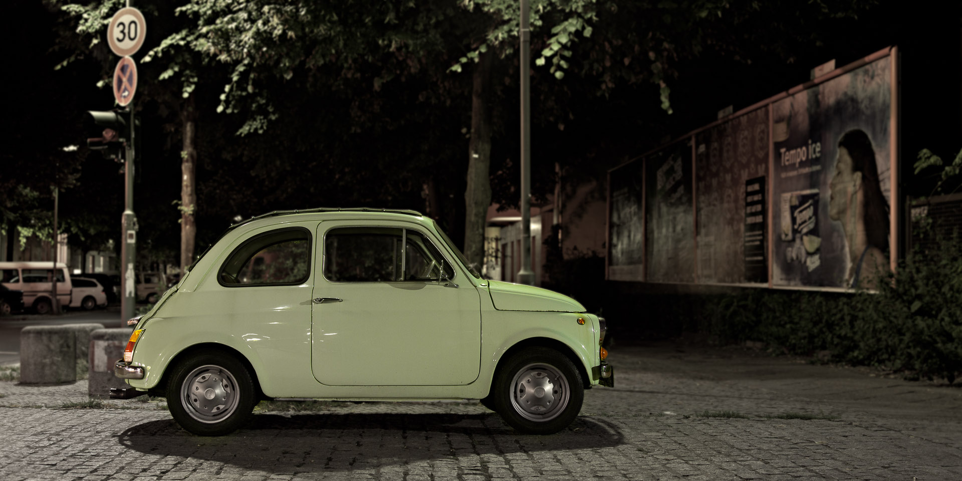 <strong><em>Fiat 500 - Cinquecento - Monumentenstr. Kreuzberg</em></strong> - young- and oldtimer in the streets of berlin, claasic cars in everyday use