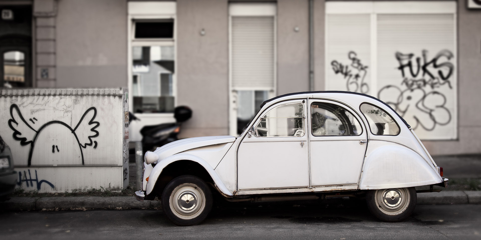<strong><em>Citroen 2CV Ente - Ryke Straße Prenzlauer Berg</em></strong> - young- and oldtimer in the streets of berlin, claasic cars in everyday use